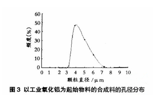 合成料在1350℃×6h熱處理后,中位孔徑約為5.1μm。故本工作所制備的輕質莫來石具有微孔結構。
